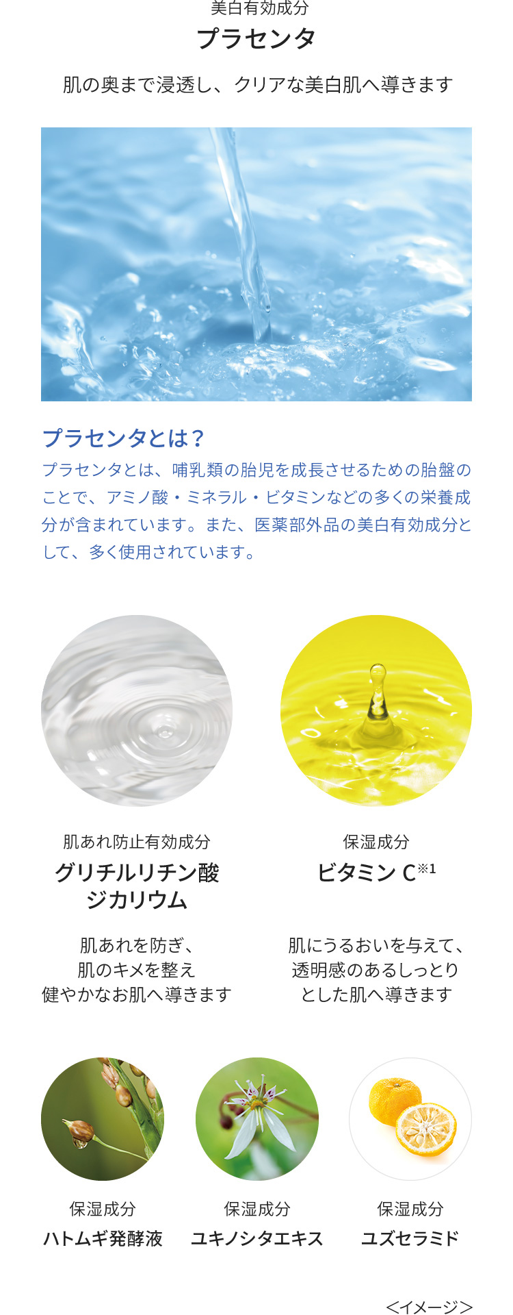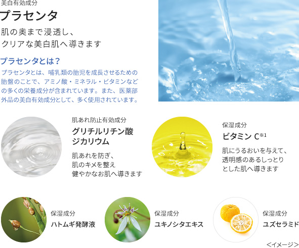 しっとり美白肌に美白有効成分としてプラセンタを配合