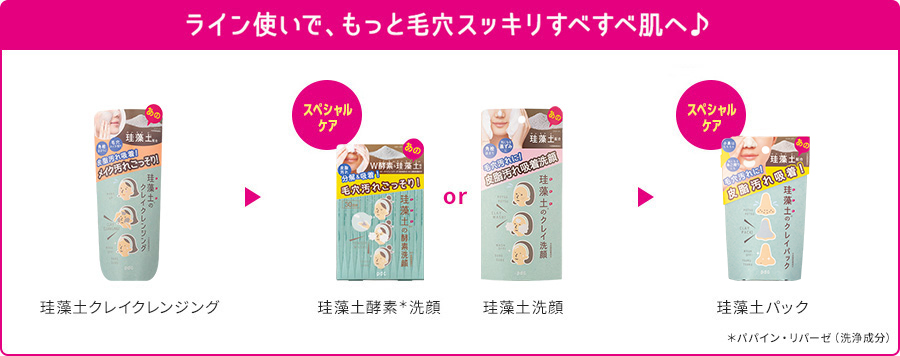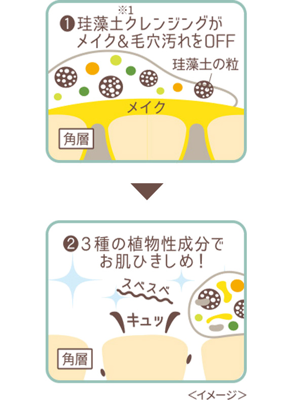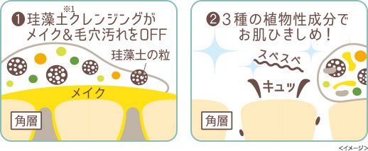 毛穴に残りがちなメイクや皮脂汚れを珪藻土が吸着!肌あたりの良いクリームタイプで汚れをごっそり落とし、すべすべ肌に導きます。
