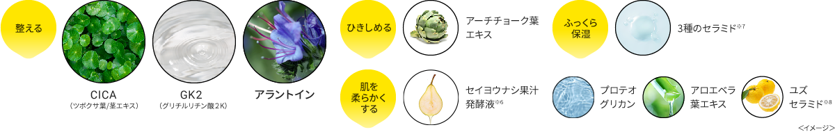 - 角層を整えるCICAツボクサ葉/茎エキス(整肌成分)