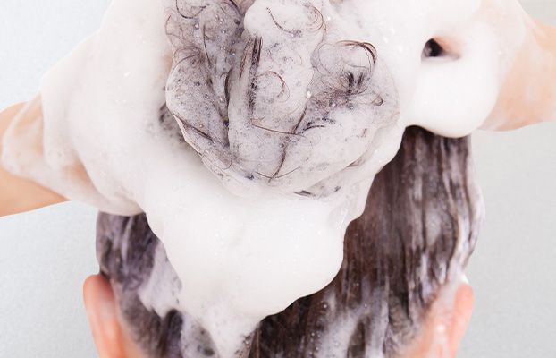 ぬるま湯で十分すすぐ2~4分を目安に、シャンプーが地肌に残らないようしっかり洗い流してください。