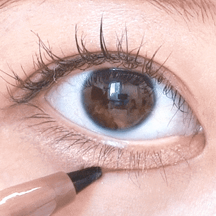 描くように塗布します。 - 2.影ライナーで涙袋の影を描きます。