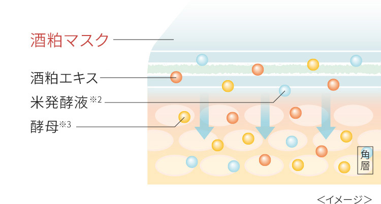 With this sheet mask, you can enjoy a high-quality sake lees beauty treatment easily and in the comfort of your own home. Original sake lees extract*3, derived from sake lees at the Kawazu Brewery in Kumamoto Prefecture, is packed into the sheet.