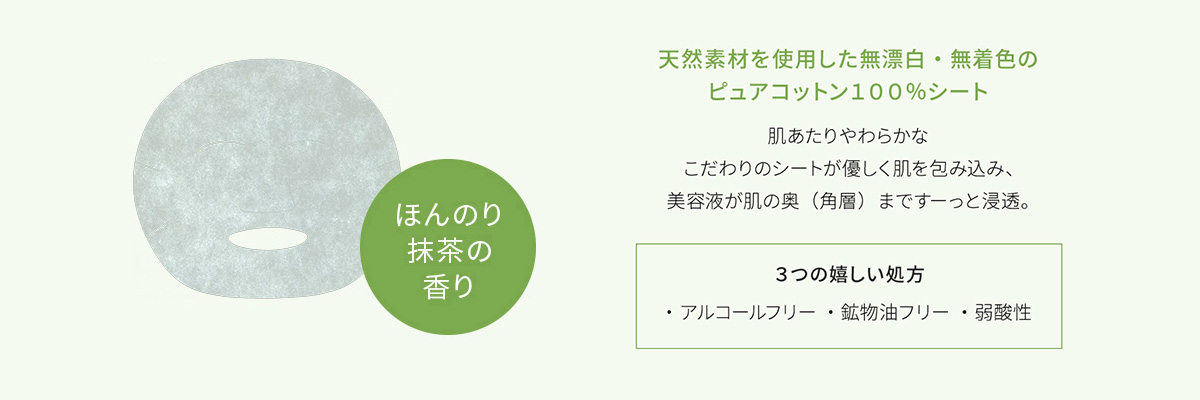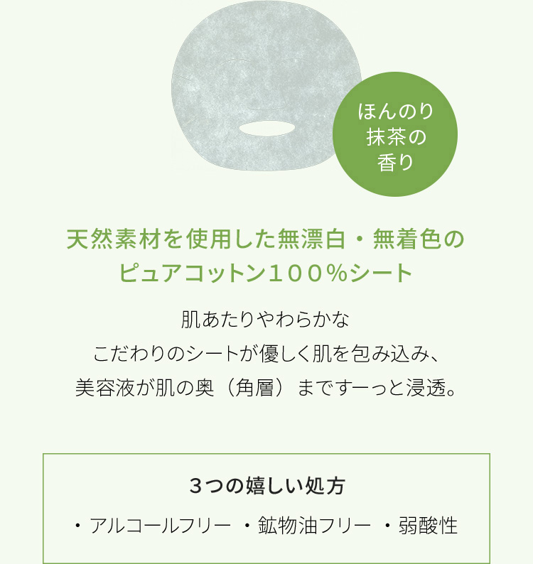 A sheet mask made of 100% pure cotton and a special Uji Matcha*1 blend.