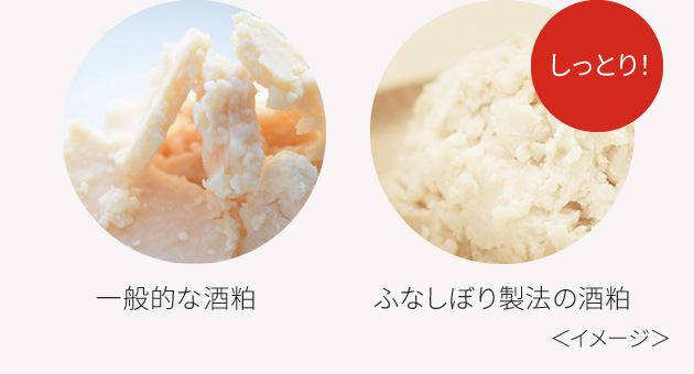 布袋に入れたもろみを寝かせ、自重と少しの圧力でやさしく絞り出すため、水分の多いしっとりとした酒粕が残るのが特長です。