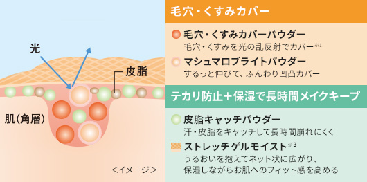 毛穴・くすみカバーパウダーで、薄づきなのに毛穴カバーテカリ防止+保湿ケアで長時間メイクしたてのふんわり毛穴レス※1肌が続きます。